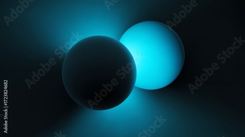 Abstract glowing spheres floating in black void with futuristic minimal style for modern digital art and creative design concept