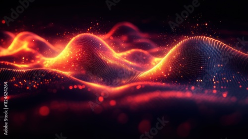 abstract, wave, glowing, particle, digital, landscape, light, texture, motion, design, visualisation, energy, background, fluid, colours, shape, illumination, pattern, technology, art, three-dimensional, render, surface, depth, ambience, futuristic, dynamic, vibrant, scenery, aesthetic, creative, space, concept, visual, graphic, modern, aethereal, aglow, atmosphere, waveform, beauty, harmony, flow, interaction, environment, creativity, simulation, illusion, perspective