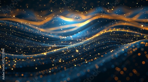 particle, wave, abstract, gold, blue, glistering, sparkle, texture, background, design, digital, art, light, dark, energy, motion, flow, dynamic, glowing, shimmering, illuminated, cosmic, celestial, night, space, fantasy, dreamlike, mystical, iridescent, radiant, aglow, vibrant, opulent, luxury, elegant, stylish, modern, graphic, three-dimensional, render
