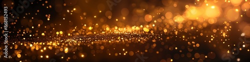 Abstract golden background with bokeh effect and shining defocused glitters. Festive gold texture for Christmas, New Year, birthday, celebration, greeting, victory, success, magic party.