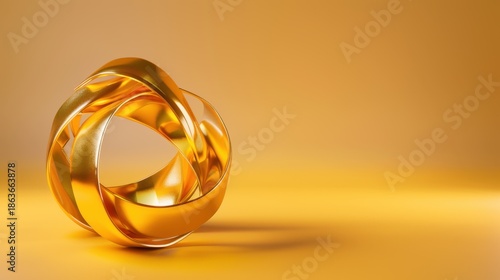 Abstract golden sculpture with flowing curves and smooth texture set against a warm yellow background for artistic designs and modern decor