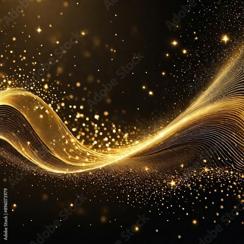 Abstract golden wave on black background. Luxury glowing background.