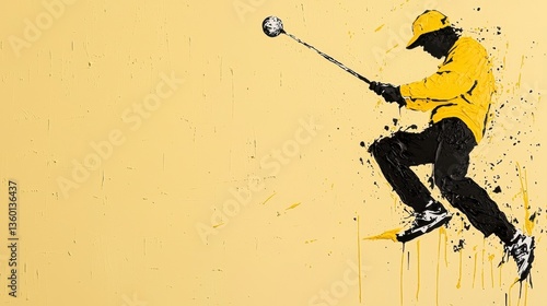 golf, golfer, abstract, illustration, sport, dynamic, motion, power, yellow, black, beige, textured, background, modern, artistic, style, energy, active, athlete, design, vector, graphic, artwork, contemporary, creative, digital, art, image, visual, graphic, picture, drawing, vignetting, painting, silhouette, action, movement, swing, club, player, competition, game, sport, leisure