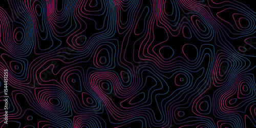 Abstract gradient multicolor on black background with Topographic line map pattern, Topographic map lines, contour background, wavy and curved lines background, Geographic map.