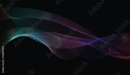 Abstract gradient particles shines line on waves illustration vector on black background.