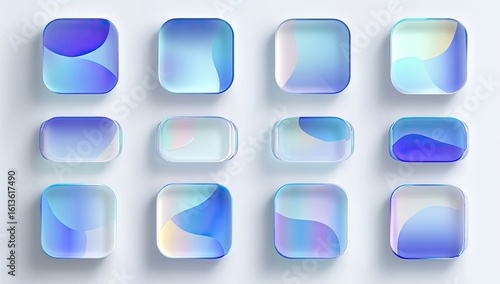 abstract, graphic, design, semitransparent, square, geometric, shape, fluid, gradient, colours, blue, purple, pastel, three-dimensional, modern, technology, interface, buttons, interactive, element, digital, art, layout, composition, texture, light, shadow, visual, pattern, symmetry, arrangement, background, white, space, clean, minimalist, contemporary, wall, panel, optical