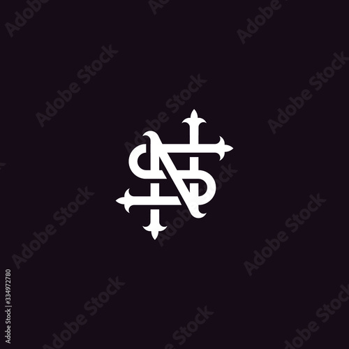 Abstract graphic vector illustration of a monogram of two letters N and S with a pattern