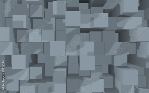 Abstract gray elegant cube geometric background. Chaotically advanced rectangular bars. 3D Rendering, 3D illustration
