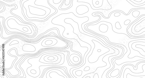 Abstract gray topography contour map background design, geometric black wave curve lines texture.