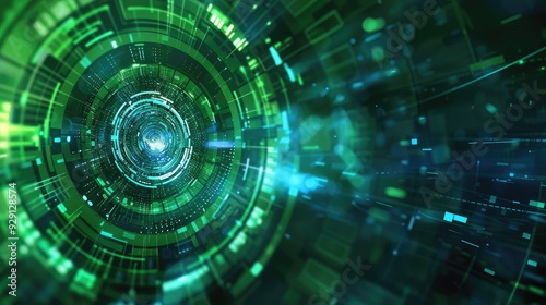 technology, abstract, digital, futuristic, network, interface, datum, science, artificial, intelligence, virtual, reality, innovation, progress, future, modern, design, graphic, green, blue, light, glow, circle, line, geometric, pattern, shape, background, illustration, concept, energy, power, speed, motion, three-dimensional, rendering, visual, effect