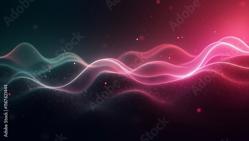 Abstract green and pink wavy gradient background. Generative Ai.
