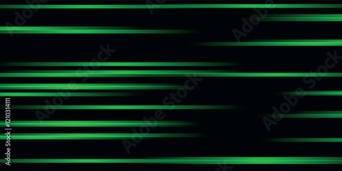 Abstract green lines, speed light effect. Illuminated traffic lanes.