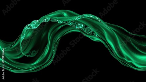 Abstract Green Liquid Flowing Dynamically in a Serpentine Pattern Against a Black Background