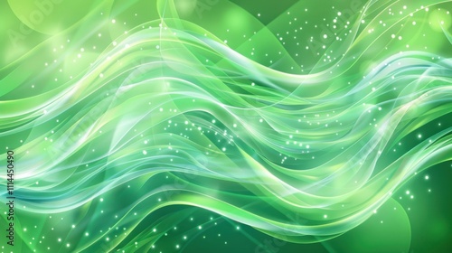 Abstract Green Wave Background with Glimmering Lights