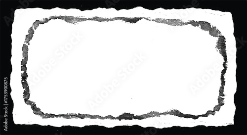 Abstract grunge ink brush stroke frame with rough distressed black and white edges on transparent background