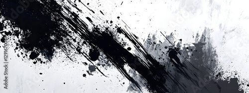 Abstract grunge vector background with brush strokes and splashes in black, white, and gray colors