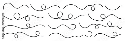 Abstract hand drawn curve. Vector swirl lines. Thin line squiggle wavy shapes. Decorative swirl and elegant divider. Looping squiggle lines pattern or texture.