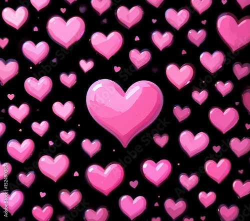 Abstract Heart Shapes on a Dark Black Background