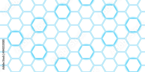 Abstract Hexagon white background, blue light and shadow. Abstract background design with white hexagon and blue light. Abstract. Hexagon. Vector.