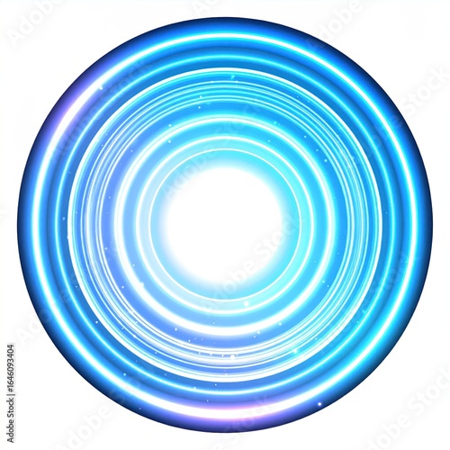Abstract Holographic Glowing Blue Ring with Particle Halo and Ripple Effect on Transparent Background