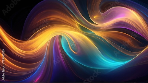 Abstract holographic waves in neon colors swirl dynamically against a dark backdrop