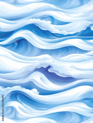 Abstract illustration of stylized ocean waves in shades of blue and white