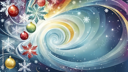 Abstract illustration wallpaper of different Christmas symbols, vibrant colors and soft swirling textures, AI generated