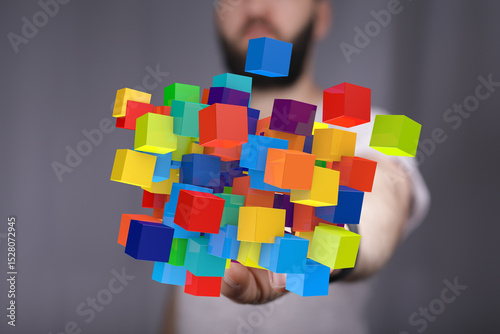 cube, three-dimensional, colourful, datum, innovation, creativity, abstract, technology, design, business, solution, concept, future, growth, progress, digital, modern, hand, floating