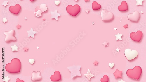 Abstract image of pink hearts with water droplets, against a blurred background.