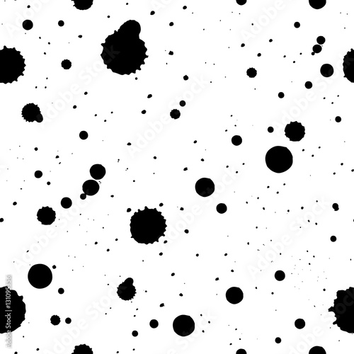 Abstract ink splashes seamless pattern. Hand-drawing of black ink on a white background. Vector Image.