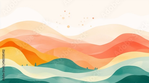 landscape, hill, mountain, abstract, art, painting, illustration, colourful, vibrant, nature, scenery, background, design, texture, wave, pastel, orange, yellow, green, teal, soft, smooth, gentle, serene, calm, peaceful, minimalist, simple, modern, contemporary, artistic, creative, whimsical, dreamy, beauty, elegant, sophisticated, idylli, picturesque, panorama, horizon, summer, autumn, spring