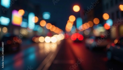 Abstract late-night city lights, blurred, bokeh effect, magical, contrast, dreamy