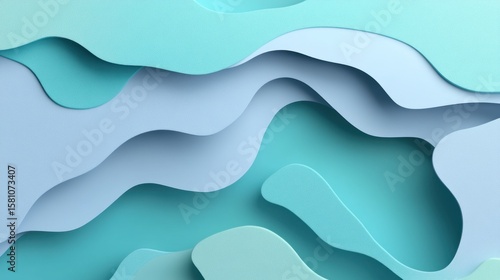 Abstract layered design with shades of turquoise and light blue.