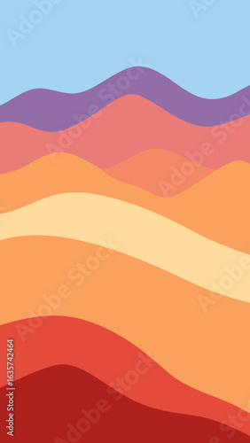 abstract, landscape, wave, wavy, layer, sunset, sunrise, gradient, colours, warm, orange, red, pink, purple, blue, sky, minimalist, modern, design, background, pattern, art, illustration, graphic, smooth, curved, shape, vibrant, calm, serene, nature, abstract art, geometric, organic, vector