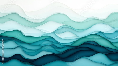 Abstract Layers of Soothing Aqua and Teal Waves in Modern Art