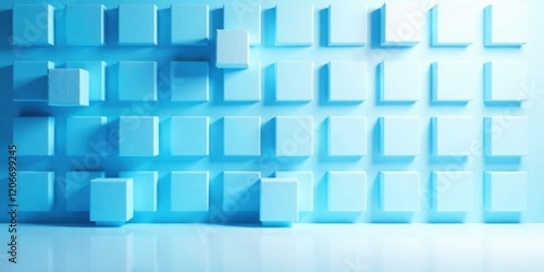 Abstract Light Blue Cube Wall Arrangement Featuring Subtle Shadowing and Depth