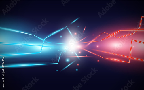 Abstract light ray blue and red surface texture background with electric effect. Technology and futuristic vector design concept for use wallpaper, cover, banner, theme, web, presentation