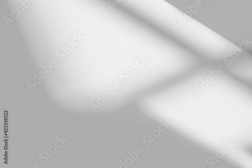 Abstract light reflection and grey shadow from window on white wall background , dark gray and sunshine diagonal geometric effect overlay for backdrop and mockup design