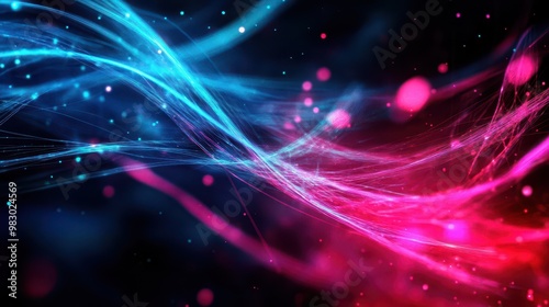 Abstract light trails in blue and pink with a magical glow against a dark background.