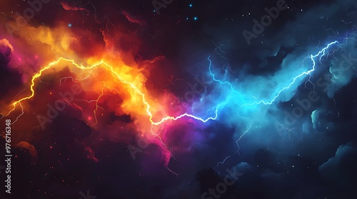 abstract, lightning, strike, cosmic, nebula, sky, cloud, night, dark, space, universe, energy, bright, glowing, electric, storm, celestial, galaxy, star, dust, red, orange, yellow, blue, purple, pink, black, white, vibrant, art, digital, paint, brush, stroke, texture, background, pattern, design, nature, science, fantasy, power, force, mystical, magical, aethereal, atmospheric