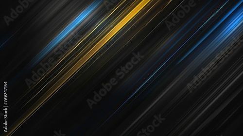 Abstract lines blue and yellow on black background, Abstract futuristic background