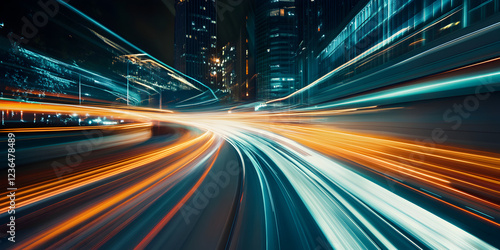 Abstract long exposure dynamic speed light trails within an urban environment theme