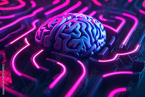 brain, mind, labyrinth, labyrinth, intellect, intelligence, neon, vibrant, fluorescent, brainstorming, innovation, psychology, thought, glow, mental, puzzle, neurology, thinking, science, memory, health, technology, three-dimensional