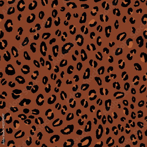 Abstract modern leopard seamless pattern. Animals trendy background. Beige and black decorative vector stock illustration for print, card, postcard, fabric, textile. Modern ornament of stylized skin.