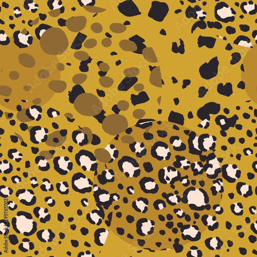 Abstract modern leopard seamless pattern with circles. Animals trendy background. Color decorative vector illustration for print, card, fabric, textile. Modern ornament of stylized skin