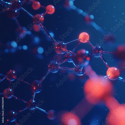 molecular, atom, abstract, science, chemistry, structure, blue, red, technology, background, digital, connection, visualisation, sphere, graphic