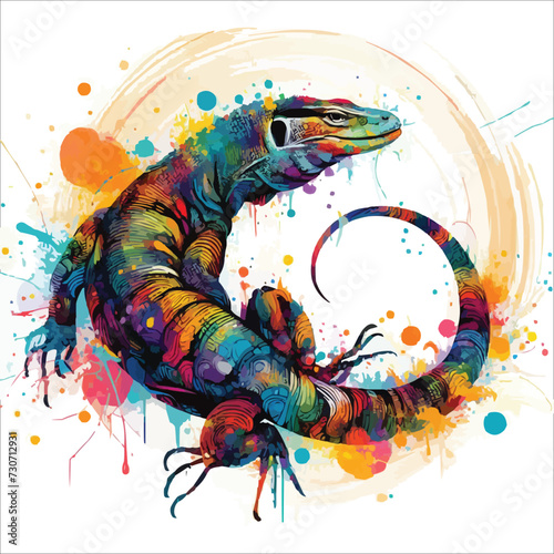 Abstract Monitor lizard multicolored paints colored drawing vector illustration