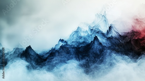 Abstract mountain peaks rising through ethereal mist digital art atmospheric landscape creative vision