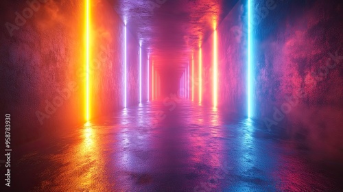three-dimensional, abstract, many-coloured, spectrum, background, bright, orange, blue, neon, ray, colourful, glowing, line, vibrant, dynamic, futuristic, light, night, fountain, water, design, vector, illustration, colours, glow, light, aurora, space, stage, fire, ray, show, sky, shine, spotlight, flames, flash
