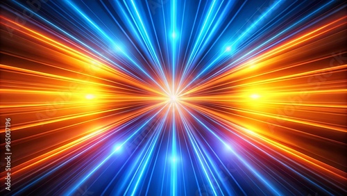 Abstract multicolor spectrum background with bright orange and blue neon rays